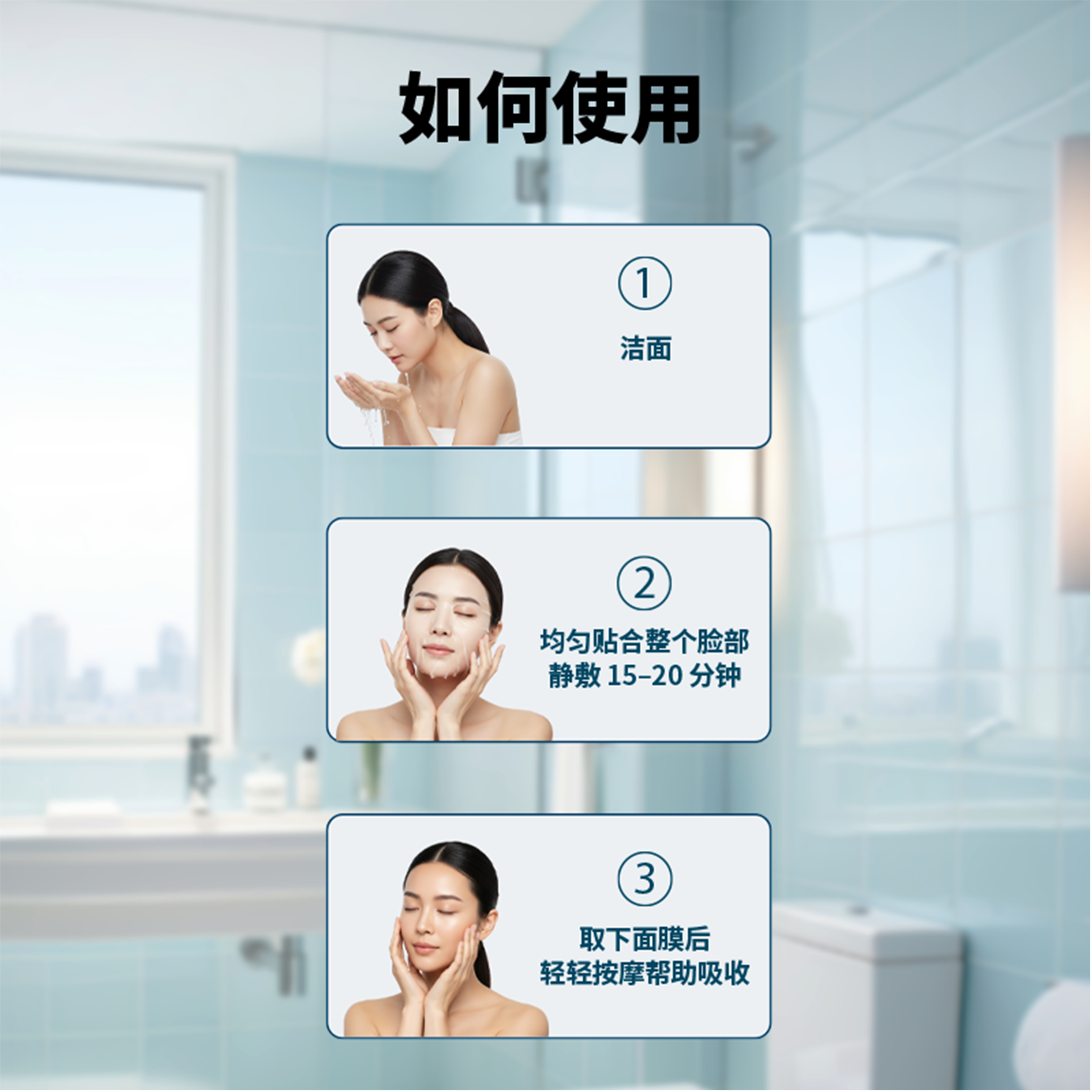 After cleansing, unfold mask and evenly place over the entire for 15-20 minutes.